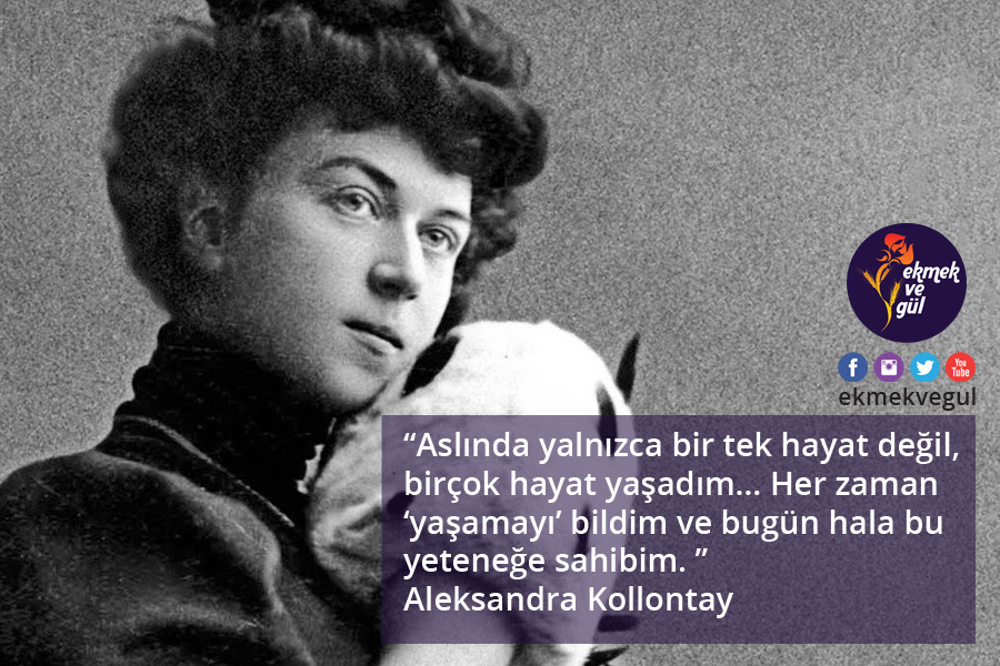 Bolşeviklerin yurtdışı bağlantılarını sağlayan, dünyanın ilk kadın elçisi olan, gittiği her yerde Sovyetler’i başarıyla temsil eden, kadının özgürleşmesini şiddetle savunan, işçilerin örgütlenmesinde önemli rol oynayan, çalışkanlığı ve disipliniyle Sovyet iktidarının kuruluşunda çok önemli rolleri olan Bolşeviklerin Halk Komiseri Kollontay kendi hayatını kaleme aldığı ‘Birçok hayat yaşadım’ kitabında özetliyor bu sözlerle yaşamını. Sözünü hatırlatırken kitabı tavsiye etmemekte olmaz.