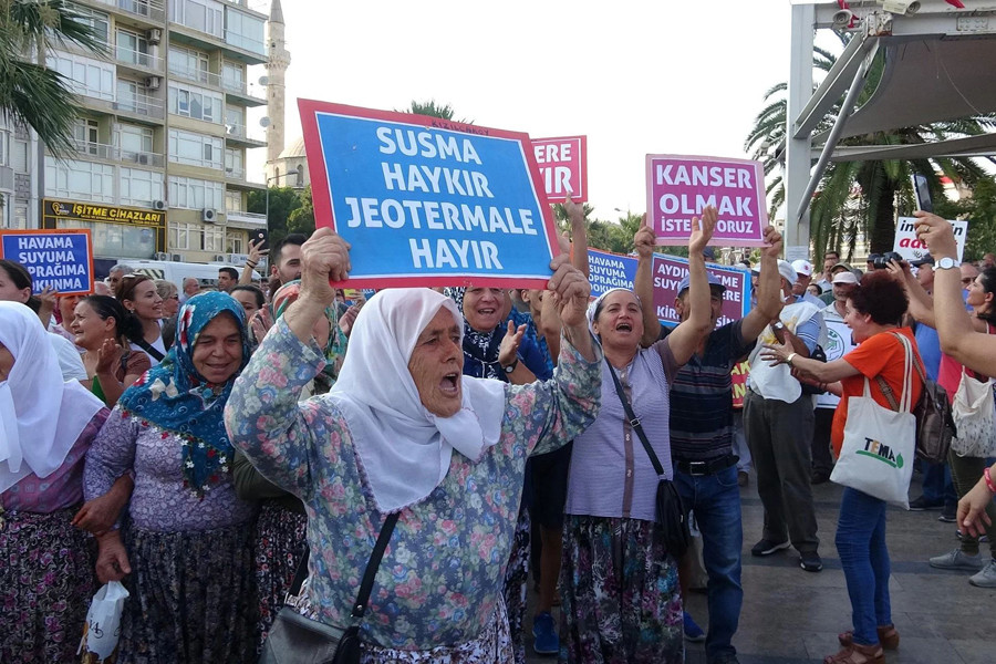 Aydın'ın 16 ilçesini kapsayan ve 110 jeotermal saha çalışması için 5-8 Ağustos tarihleri arasında ihale yapılacak. Buna karşı yapılan basın açıklamasında, "Şu anda Aydın'dan, Manisa'dan, Turgutlu'dan ve Denizli'den olmak üzere birçok il ve ilçeden yürekli insanlar buraya gelmiş. Havasını, suyunu ve toprağını kurtarmak için gelmiş. Bizim topraklarımız birinci sınıf tarım toprağı ve bizlerde birinci sınıf insanlarız. Jeotermalle mücadele için bundan sonra hep beraberiz" denildi.