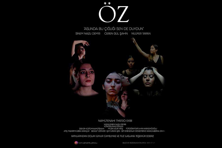 4 kadın oyuncudan oluşan Namütenahi Tiyatro Ekibi, 11 karaktere sahip olan Öz adlı oyunu sergiliyor. 1 saat 10 dakika süren oyun tek perdeden oluşuyor. Güldünya Tören’in hayat hikayesini anlatan oyunda 1 erkek karakter de var. 11 sahneden oluşan oyunda 2 müzikal ve 1 dans sahnesi mevcut.