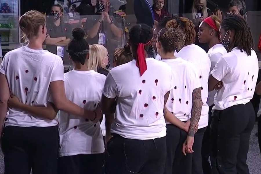 Washington Mystics basketbol kulübünün kadın oyuncuları, ABD liglerinde oynayan diğer takımların sporcuları gibi bugün yapılacak maçlara çıkmayacaklarını açıkladılar. Jacop Blake’in polis tarafından kurşunlanmasını protesto eden kadınlar, sırtında yedi kurşun deliği olan tişörtleriyle “Black Lives Matter/Siyah hayat önemlidir!” dedi.