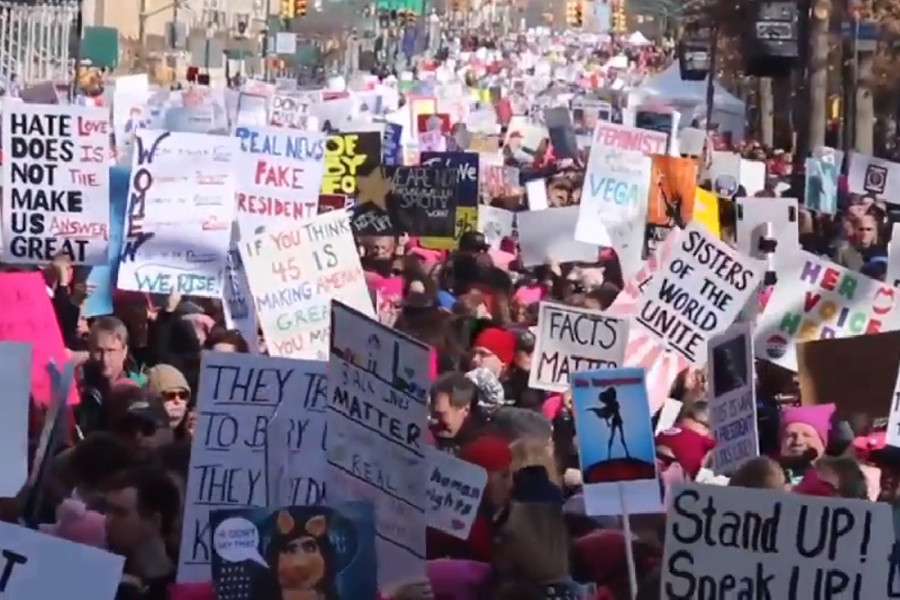 ABD’de sokaklara dökülen yüz binlerce kadın, ABD Başkanı Donald Trump'ın seçilmesinin birinci yılında Trımp yönetimini protesto etti. New York’ta Columbus Circle ve Central Park kesişiminde bir araya gelen kadınlar, ellerinde Trump’ın cinsiyetçi, ırkçı ve göçmen karşıtı politikalarını eleştiren dövizler taşıyarak “Trump gitmeli” sloganları attı. Eylem yapanlara yol kenarlarında toplanan on binlerce kişi de destek verdi.