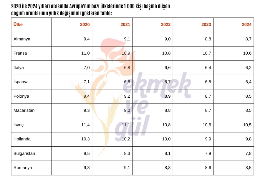 2024 yılında Avrupa ülkeleri, azalan doğum oranları ve yaşlanan nüfusla mücadele etmek amacıyla çeşitli aile ve nüfus politikaları uygulamaya koydu. Ancak, bu politikaların etkinliği ülkeden ülkeye değişiklik gösterdi.