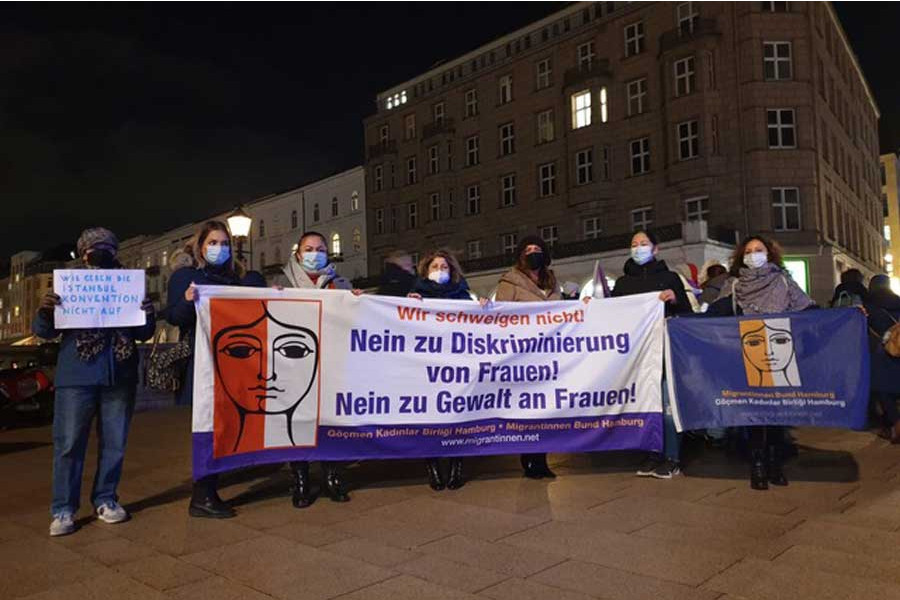Almanya Göçmen Kadınlar Birliği 25 Kasım Kadına Yönelik Şiddete Karşı Uluslararası Mücadele ve Dayanışma Günü nedeniyle bir açıklama yaparak şiddetten arınmış bir yaşam ve kendi kaderini tayin hakkı için mücadele eden dünya çapındaki tüm kadınlarla dayanışma içindeyiz ve mücadele ediyoruz denildi. Kadına yönelik şiddetin dünya çapında arttığı dile getirilen açıklamada, “Güncel gelişmeler dünya genelinde kadın haklarının kötüye gittiğini göstermektedir. İnsan hakları ve toplumsal cinsiyet eşitliğine yönelik saldırılar, kadınların ve kız çocuklarının korunmasını daha da kötüleştirmiştir. Aile içi şiddet, psikolojik şiddet, cinsel şiddet ve tecavüz, cinsel sömürü ve insan kaçakçılığı, dijital alanda da taciz ve takip birçok kadın için günlük yaşamın bir parçasıdır. Kadına yönelik şiddet her zaman kadınları dezavantajlı kılan sosyal ve yapısal güç ilişkilerine gömülüdür. Ekonomik bağımlılık içinde olan, eğitim olanakları kısıtlı, yoksulluktan etkilenen, göçmen ve sığınmacı kadınlar bu yapısal şiddetten daha da fazla etkilenmektedir” denilerek, savaşa, İran’da yaşanan gelişmelere, Almanya’da kadınların şiddete karşı taleplerine değinildi.