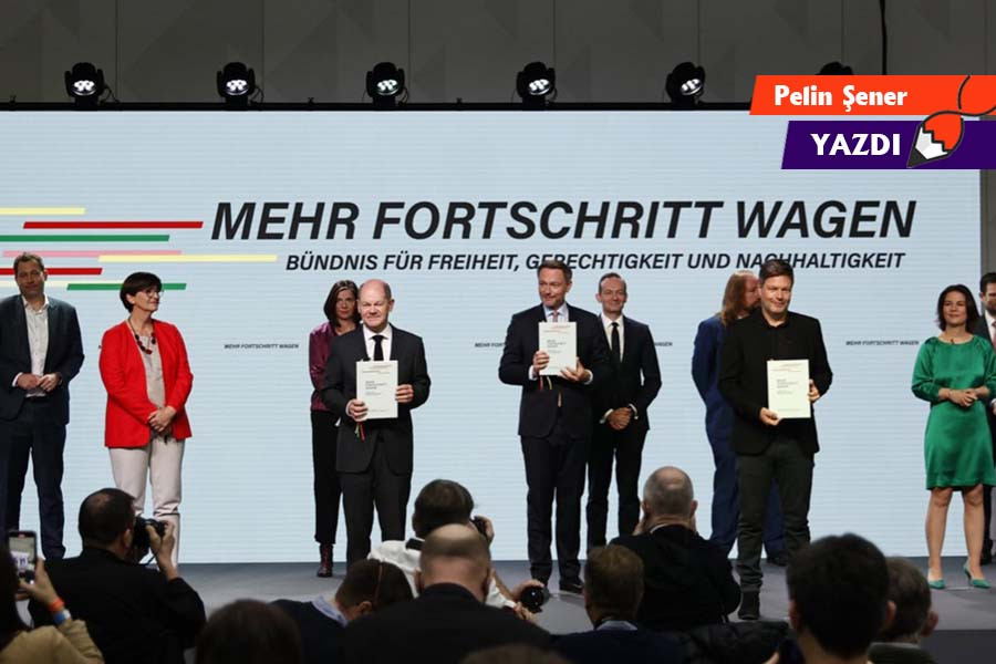 Almanya’da partiler renkleriyle de anılıyor. SPD ve Sol parti kırmızı, Hristiyan Birlik partileri siyah, Yeşiller Partisi tabi ki yeşil ve FDP sarı. Koalisyon SPD, Yeşiller ve FDP den oluşunca buna “Trafik Lambası” adı verildi. Koalisyon anlaşması ve üzerinde anlaşmaya varılan birçok konu dış politikadan, çevreye, konut sorunundan iç politikaya dek her biri ayrı ayrı incelenmeyi hak ediyor.
