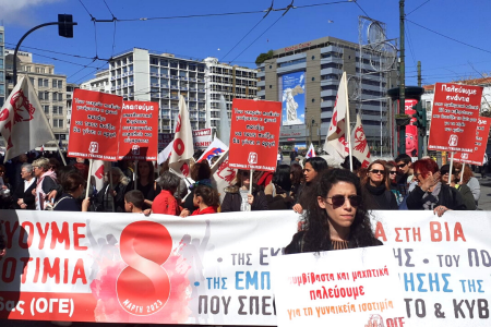 Yunanistan’da 8 Mart Dünya Emekçi Kadınlar günü protestolarıyla birleşen genel grev ve eylemler sabah saatlerinden itibaren sokakları da doldurdu.