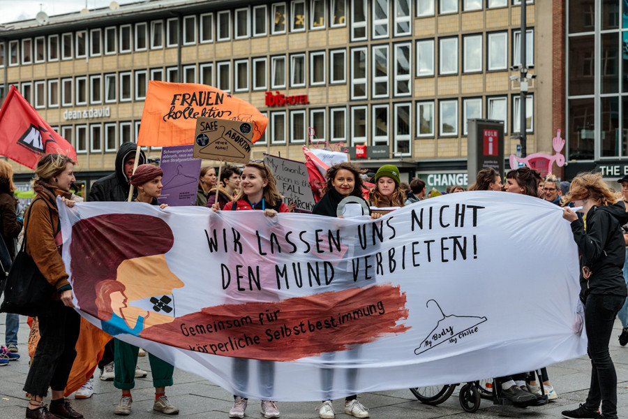 Hamburg’da 1000 kadın yürürken, Berlin’de Federal Sağlık Bakanlığı’nın çevresinde insan zinciri oluşturuldu. Eylemlerde kürtaj kısıtlamasıyla birebir karşı karşıya kalan kadınlar ve kürtaj yaptığı için ceza alan doktorların yanı sıra siyasiler ve sanatçılar da konuşmalar yaptı. Farklı ülkelerde güvenli ve yasal kürtaj için mücadele eden kadın örgütlerinden mesajlar okundu.