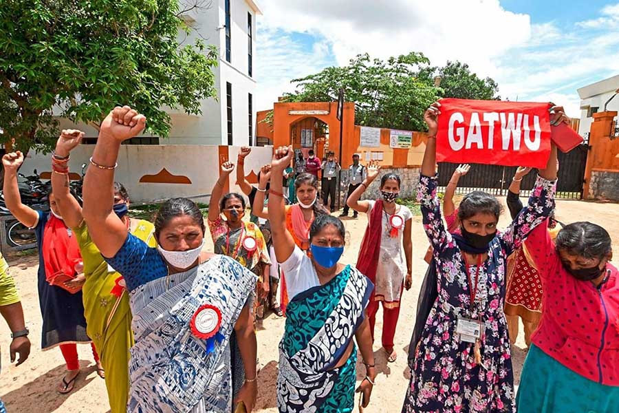 Güney Hindistan'daki Srirangapatna'da kadınlar bir aydan fazla bir süredir birleşiyorlar. Her gün fabrika önünde oturuyorlar. İşten atılmadan önce H&M için giysi üretiyorlardı. 6 Haziran'da patron fabrikadaki hoparlörler aracılığıyla 1.380 işçinin hepsinin haber verilmeden kovulduğunu ve Pazartesi günü işe gelmemeleri gerektiğini duyurdu. Bunlardan biri olan Pallavi: "Uyarı yapılmadan haberimiz oldu. Yarımız çoktan eve gitmek için işletmeden ayrılmıştık, geri kalanımız neredeyse ayrılmak üzereydi." diyor.