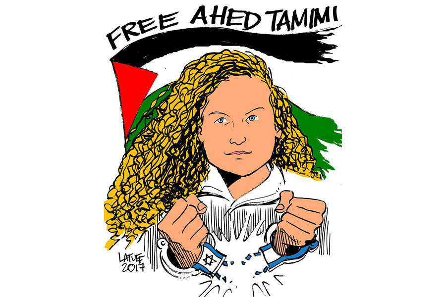 Karikatürist Carlos Latuff, İsrail askerlerince gözaltına alınan ‘Filistin’in Cesur Kızı’ lakabıyla tanınan Ahed Tamimi’yi çizdi.