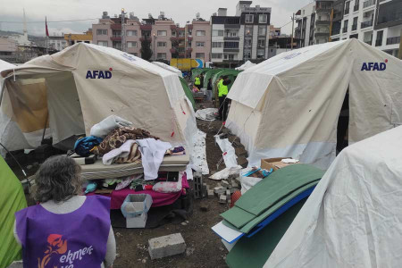 AFAD ve hükümet bir an önce depremzedelerin temel ihtiyaçlarını karşılamalı, herkese kontenar verilmeli, kadınların, çocukların, 200 binin üzerindeki hamile kadının yaşam şartları, sağlığı güvenceye alınmalıdır! Dayanışmayı ve gönüllü çalışmayı engelleme ve yasak politikasından vazgeçilmelidir!”