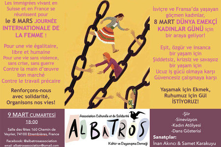Albatros Kültür ve Dayanışma Derneği ile bir araya gelen İsviçre ve Fransa’da yaşayan göçmen kadınlar 9 Mart Cumartesi günü 8 Mart etkinliği yapıyor.