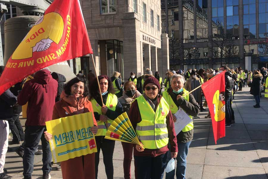 Ver.di, Sosyal ve Eğitim Hizmet iş kolunda devam eden TİS görüşmeleri nedeniyle 8 Mart’ta tam günlük uyarı grevine çağrı yaptı. Alınan grev kararını ve çalışma koşullarını kadınlarla konuştuk.