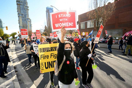 Kanada Burnaby'deki Hilton Metrotown oteli tarafından toplu şekilde işten çıkarılan işçiler, işten çıkarılmalarının birinci yılında direnişlerini sürdürüyor.