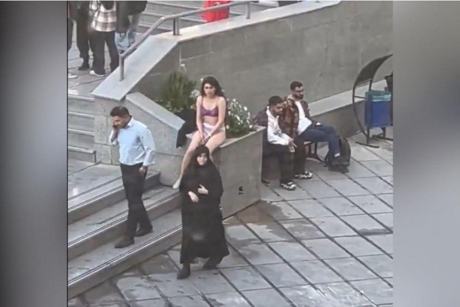 Tahran İslami Azad Üniversitesi’nde bir öğrenci rejimin zorunlu örtünme kurallarını kıyafetlerini çıkararak, protesto etti.