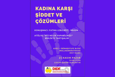 Kadına yönelik şiddetin daha fazla konuşulmaya başlandığı kasım ayında, İsviçre’deki DİDF Kadın Grubu “Kadına karşı şiddet ve çözümleri” başlıklı bir etkinlik düzenliyor.