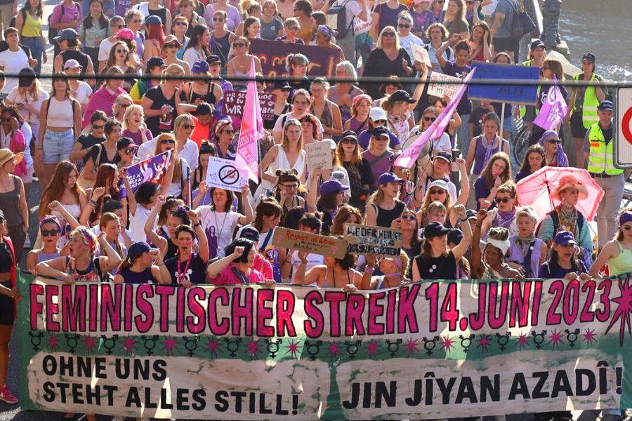 İsviçre’nin 50 ayrı noktasında bu yıl bir kez daha kadın örgütleri, sendikalar, partiler ve göçmen kadın örgütlerinin çağrısıyla kadınlar 14 Haziran’da gün boyu eylemler yaptı, sokağa çıktı. USS/SGB (İsviçre Sendikalar Birliği) akşam saatlerinde yaptığı basın açıklamasında 300 bin'den fazla kişinin eyleme katıldığını duyurdu.