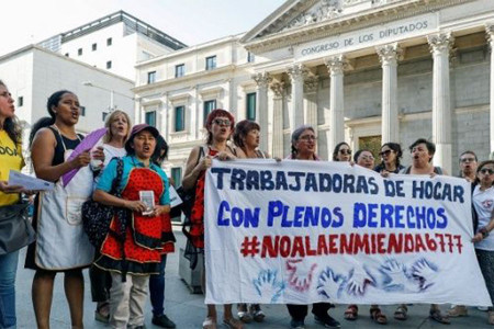 İspanya’da ev işlerinde çalışan yaklaşık 601 bin işçinin 528 bini kadın. Ev işçisi olarak çalışan kadınların ise üçte birinin sosyal güvencesi var. Ev işçilerinin büyük çoğunluğunun göçmen kadınlar.