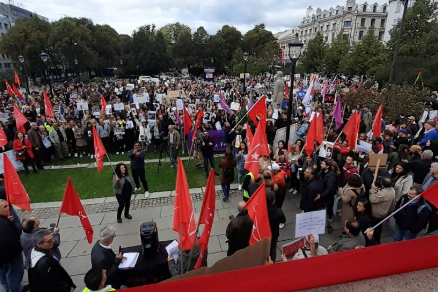 Norveç’te yaşayan İranlı sol güçlerin, Kürt örgütlerin ve birçok yerli Norveçlinin katıldığı eylemde Norveçli sol partilerin gençlik örgütleri de bayraklarıyla yer aldı.