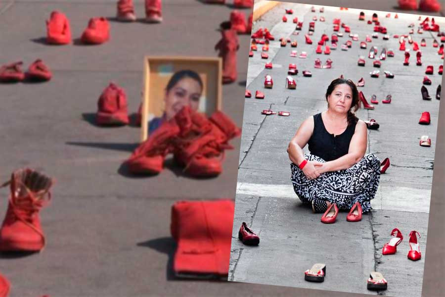 Meksikalı ödüllü sanatçı Elina Chauvet’ten ilham alan protestocular, öğle saatlerinde kavurucu sıcağa rağmen başkentteki ünlü Zocalo meydanında bir araya geldi. Protestocular, öldürülen kadın ve kız çocukları temsilen meydana kırmızı ayakkabılar yerleştirdi. Her bir çift ayakkabı kayıp bir kadını, kırmızı renk ise cinayetleri işaret ediyor.