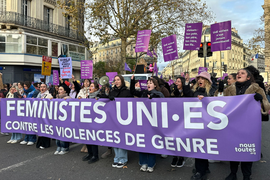 Fransa'da kadınlar 25 Kasım Kadına Yönelik Şiddete Karşı Uluslararası Mücadele ve Dayanışma Günü öncesinde şiddete karşı coşkulu sloganlarla Bastille Meydanına yürüdü.
