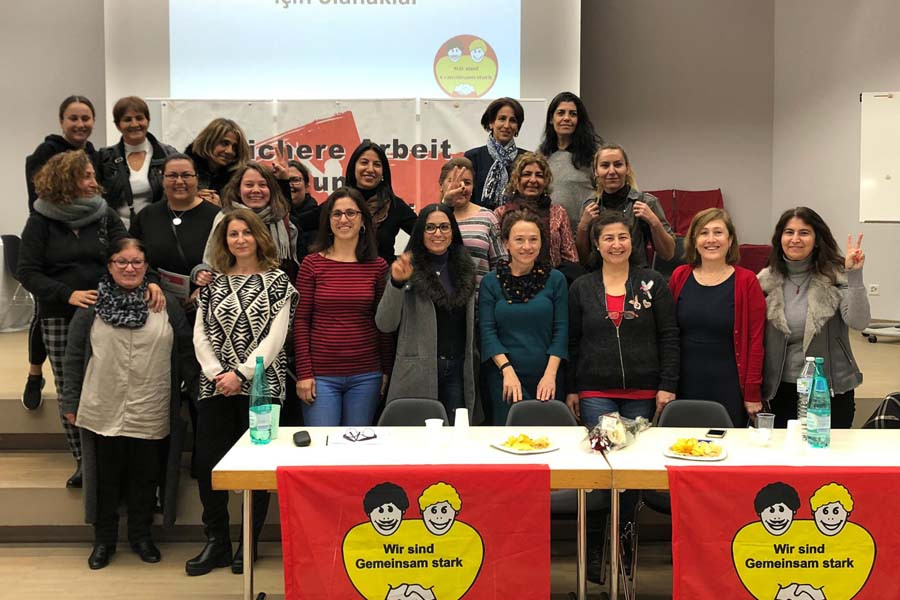 Konferansa Unia Sendikası Göçmen Bölümü çalışanı Marília Mendes ve Almanya Göçmen Kadınlar Birliği’nden Pelin Şener de katıldı.