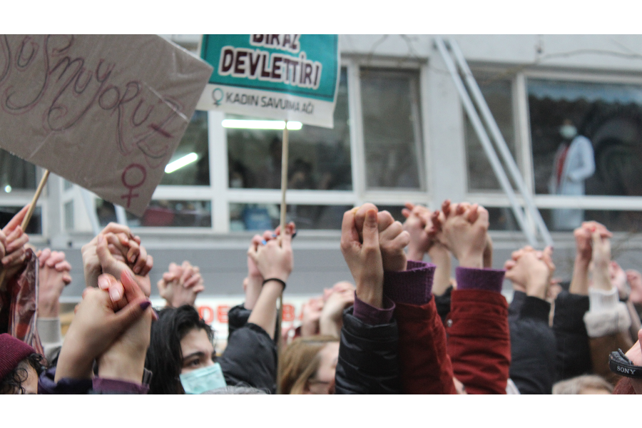 Kendi ülkelerinde Sözleşme'nin tam olarak uygulanması talebiyle ve Türkiye'nin Sözleşme'den çekilme kararına karşı Türkiye'deki kadınlarla dayanışmak için Almanya'da kadınlar sokakta!